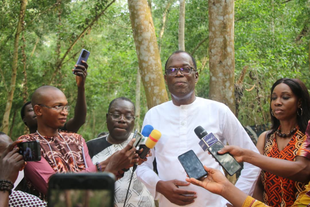 Le projet « N.art.urel » du Centre culturel ‘‘Lieu Unik’’ d’Abomey appuyé par l’Institut français du Bénin est rentré depuis le vendredi 15 décembre 2023 dans sa phase de mise en œuvre par le démarrage de la résidence de création. La cérémonie qui a consacré l’ouverture officielle des travaux de cette résidence s’est déroulée dans la Forêt classée de Pahou. Ceci sous l’égide du Directeur de ‘‘Lieu Unik’’ d’Abomey , Dominique Zinkpè, de la Directrice de l’Institut français du Bénin Fabienne Bidou et du Directeur de cabinet du Ministre de la culture Eric Totah.