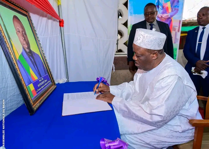 “C’est avec une profonde tristesse que j’ai présidé ce jour à Sirarou, commune de N’Dali, la cérémonie d’hommage organisée par l’Assemblée nationale à la faveur des obsèques de notre regretté collègue député, Abel Sabi SOUROKOU. Mes collègues députés et moi-même avec le concours d’éminentes personnalités de la République qui se sont jointes à nous pour la triste circonstance, avons honoré la mémoire d’un homme remarquable dont la disparition laisse un vide immense au sein de l’institution parlementaire. Je réitère encore une fois la solidarité de la représentation nationale à sa famille et tous ceux qui pleurent sa perte. Puisse Dieu le Père Céleste par son Esprit Saint leur apporter la force et le réconfort dont ils ont besoin dans cette épreuve.Repos éternel à l’âme de Abel ! Amen”.