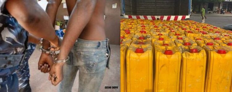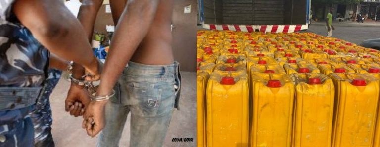 Une affaire de vol de 250 bidons d’huile végétale emporte deux (02) voleurs. L’acte frauduleux a lieu dans une société spécialisée dans le commerce général au quartier Jéricho. En effet, selon la Direction de la Police républicaine, tout est parti d’une plainte du propriétaire de la société. Pour remonter aux faits, deux (02) individus se sont présentés à la caisse de la société avec un bon de livraison pour se faire livrer deux cent-cinquante (250) bidons d’huile végétale. La caissière ayant remarqué que le document de livraison n’est pas authentique, l’a signalé aux faux clients. Ayant compris que leur coup a été démasqué, un des deux individus réussit à fuir les lieux laissant son complice qui serait conducteur du tricycle sollicité pour l’opération de vol. Conduit au commissariat, ce dernier déclare ne pas connaître celui qui l’a sollicité mais qu’il a le numéro du destinataire de la marchandise. Malheureusement, suite à une vérification minutieuse des bons de commandes livrés, il est constaté que “deux cent-cinquante (250) bidons d’huile végétale d’une valeur de six millions deux cent-cinquante mille (6.250.000) CFA ont été livrés suite à la présentation d’un bon de livraison falsifié à l’acabit de celui détecté par la caissière” informe la police républicaine. La police a poursuivi les enquêtes et a interpellé à Cococodji celui qui doit réceptionner la marchandise. Ce dernier reconnaît les faits de vol, et révèle que c’est son vrai consanguin employé dans la société qui serait le cerveau de cette manœuvre. Les procédures de perquisition à son domicile à Porto-Novo, au quartier Kpogbomè ont permis de saisir deux cent trente-neuf (239) bidons sur les deux cent cinquante (250) volés dans la société. Les deux (02) individus seront présentés au Procureur de la république pour répondre de leurs actes.