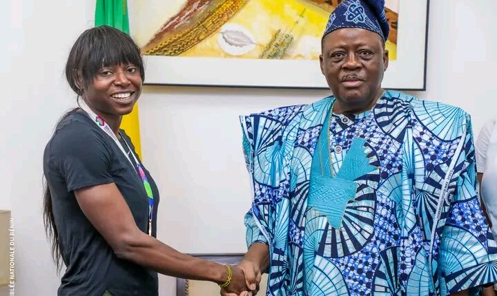 Louis Vlavonou, Président de l’Assemblée Nationale du Bénin a célébré avec l’athlète béninoise internationale Noélie Yarigo son sacre obtenu il y a quelques jours à Glasgow en Ecosse.