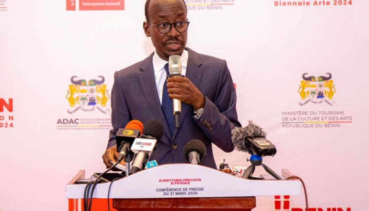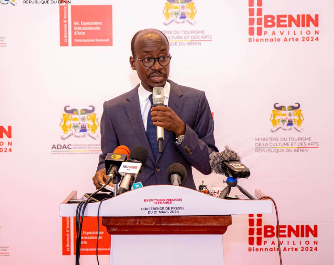Le ministre du Tourisme, de la Culture et des Arts (MTCA), Jean-Michel Abimbola a animé une conférence de presse ce jeudi 21 mars 2024, autour de la participation du Bénin à la 60e édition de la biennale d’art contemporain de Venise en Italie. L’autorité a saisi cette occasion pour dévoiler le thème du pavillon du Bénin et préciser les ambitions du gouvernement en autorisant la participation du pays à ce grand rendez-vous considéré comme les Jeux Olympiques de l’art plastique.