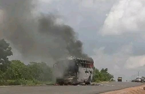 En partance pour le Niger : un bus de transport en commun prend feu à Bembèrèkè