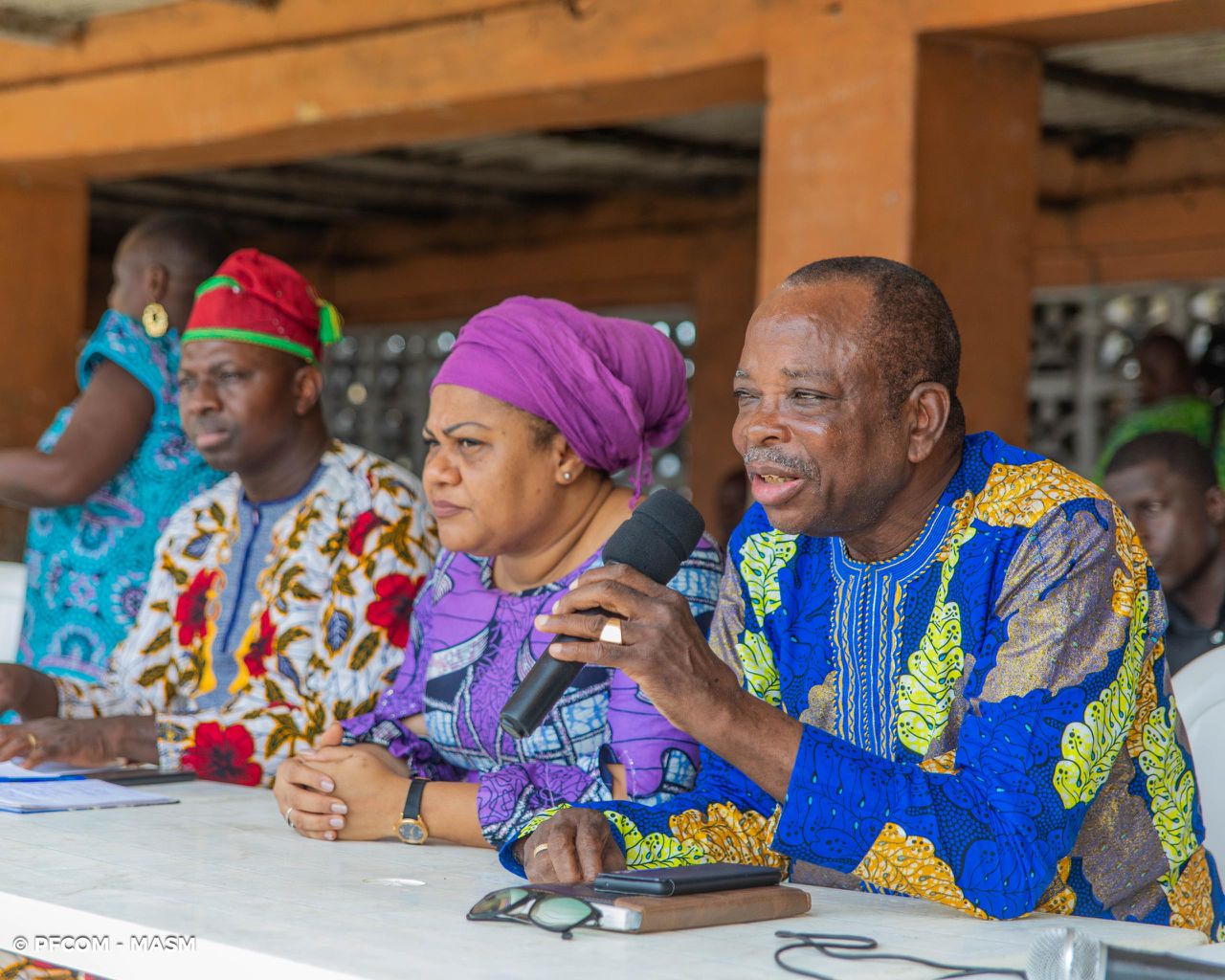 Isidore GNONLONFOUN, Ancien Maire de la Ville de Cotonou et sage de la communauté a salué la présence de la ministre et appuyé également l’exposé du Coordonnateur. Il s’est engagé à travailler pour une adhésion totale de cette communauté au succès du PROMAC.