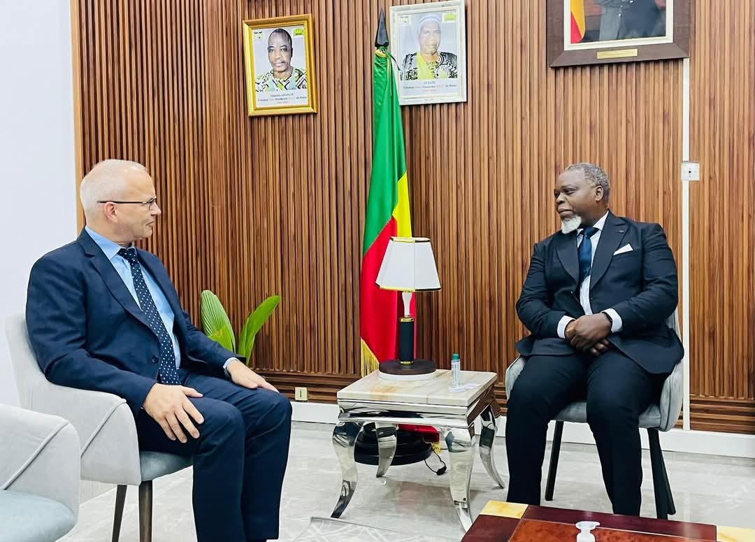 Le président de la Haute Autorité de l’Audiovisuel et de la Communication du Bénin (HAAC), Edouard LOKO a reçu en audience ce mercredi 05 février 2025, à son Cabinet, SEM Stefan BUCHWALD, Ambassadeur d’Allemagne près le Bénin. Les deux personnalités ont échangé autour de la coopération entre les deux pays surtout dans le domaine des médias. Edouard Loko et Stefan BUCHWALD ont convenu de poursuivre cette coopération en vue du renforcement des liens entre les deux peuples. Rappelons le diplomate allemand en au poste au Bénin depuis février 2024, date à laquelle il a officiellement remis ses lettres de créance au président Patrice Talon.