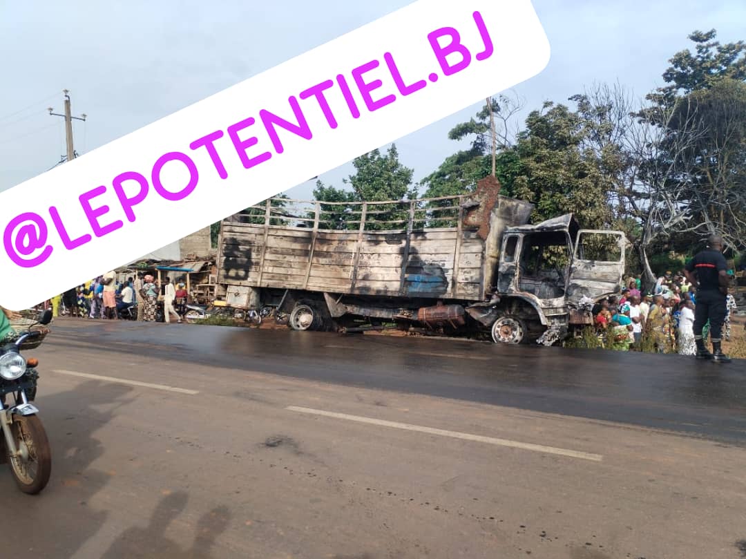 Un camion chargé d’essence de contrebande a pris feu ce dimanche 22 juin 2025, un peu avant l’aube, dans le village Ogoukpatè, arrondissement de Okoakari dans la commune de Adja-Ouèrè, département du Plateau. Le Groupe de presse Le Potentiel, à travers son Département Enquête et Investigation (DEI), a pu constater les dégâts sur place, trois morts calcinés, une scierie consumée, des installations électriques détruites, un immeuble noirci et la chaussée dégradée.