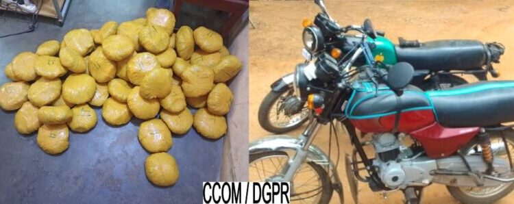 L’intervention s’est déroulée sur une piste rurale près du village de Fita, dans l’arrondissement de Kpingni. Alertés par la présence suspecte de deux individus à moto, les policiers ont enclenché une opération qui a conduit à l’abandon de deux motocyclettes non immatriculées et d’un colis dissimulé dans un sac d’engrais. À l’intérieur, les agents ont découvert les plaquettes de chanvre indien, selon les précisions fournies par la cellule de communication de la Police républicaine.