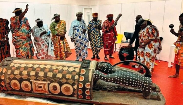 Restauré en 2022 en prévision de son retour, le Djidji Ayôkwé va enfin regagner sa terre natale plus d’un siècle après sa spoliation. Cette restitution répond à une demande officielle formulée par l’État ivoirien en 2019, mais les revendications datent, elles de l’indépendance du pays en 1960.