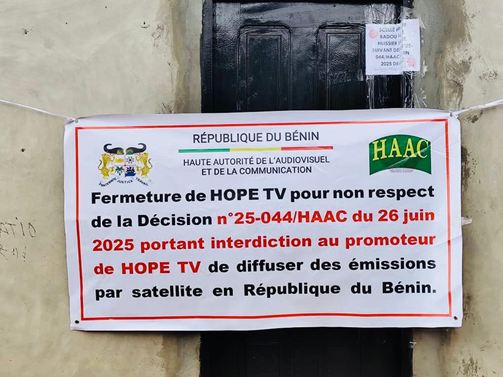 En effet, après des mises en demeure par communiqués restées sans suite, et conformément à la décision Numéro 25-044 en date du 26 juin 2025, une délégation de l’institution de régulation des médias au Bénin est descendue sur le terrain ce jeudi 14 Août 2025 pour une opération de mise sous scellés des équipements de deux télévisions pirates émettant par satellite. Il s’agit de HOPE TV et NOE TV. Cette opération a été conduite en présence d’un huissier de justice et des éléments de la Police Républicaine. Elle s’inscrit dans la droite ligne de sa mission de protection de la presse et de tous les moyens de communication de masse.