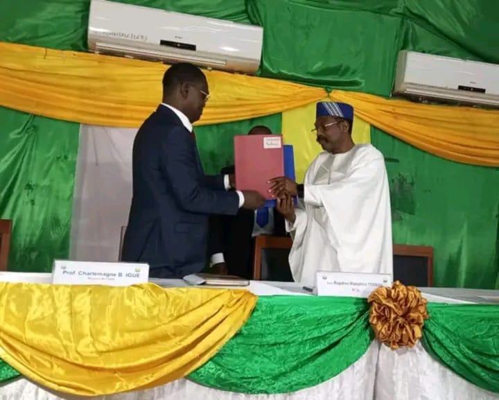 En réalité, Charlemagne Igué est un économiste de formation et un fin connaisseur de l’Université d’Abomey-Calavi. Après y avoir décroché sa maîtrise en 1997, il a élargi son parcours académique au Burkina Faso puis en Côte d’Ivoire. Devenu professeur titulaire en sciences économiques depuis 2017, à la suite de son agrégation, il a exercé plusieurs fonctions de responsabilité, notamment en tant que doyen de la FASEG. Aujourd’hui, il assure la présidence de la CIERÉA, un réseau panafricain d’institutions économiques, et représente le Bénin au sein du Conseil national du crédit de la BCEAO. En outre, il est important de préciser que cette cérémonie a eu lieu suite à la nomination du professeur Charlemagne IGUE en conseil des ministres le mercredi 17 septembre 2025.