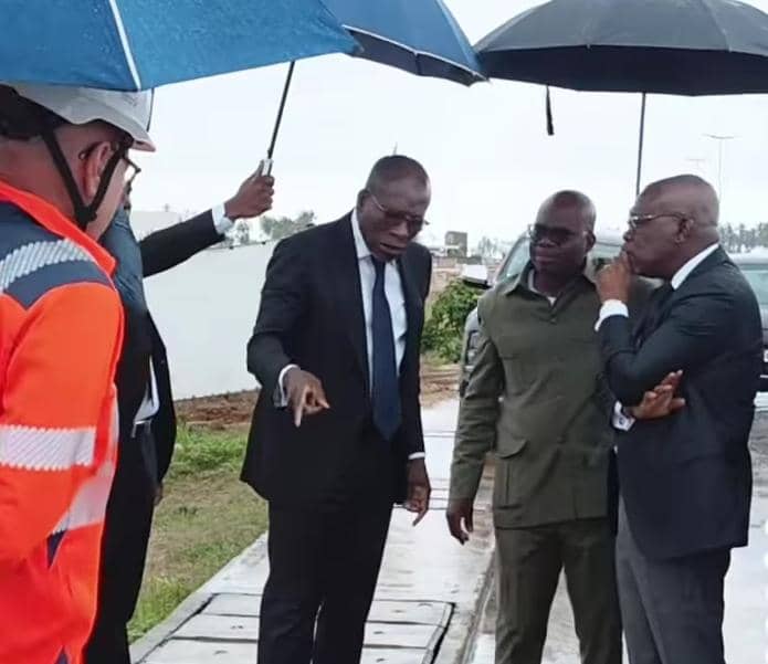 Sous une pluie battante : Patrice Talon visite les chantiers de la Route des Pêches et du Ouidah Golf Club